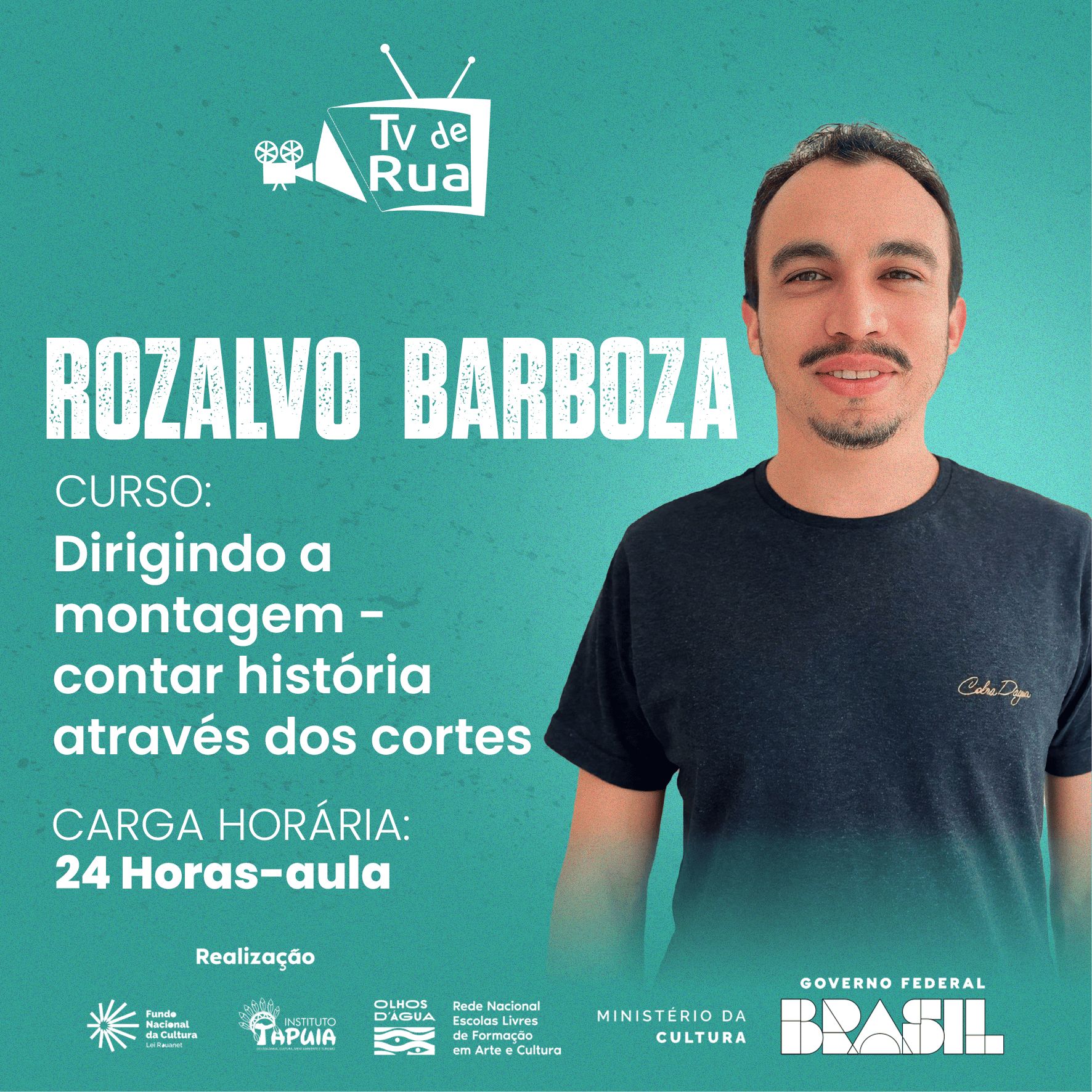 O projeto TV DE RUA, conta com a participação de Rozalvo Barboza Tomaz para ministrar o curso Dirigindo a Montagem: Contar História Através dos Cortes. Prop