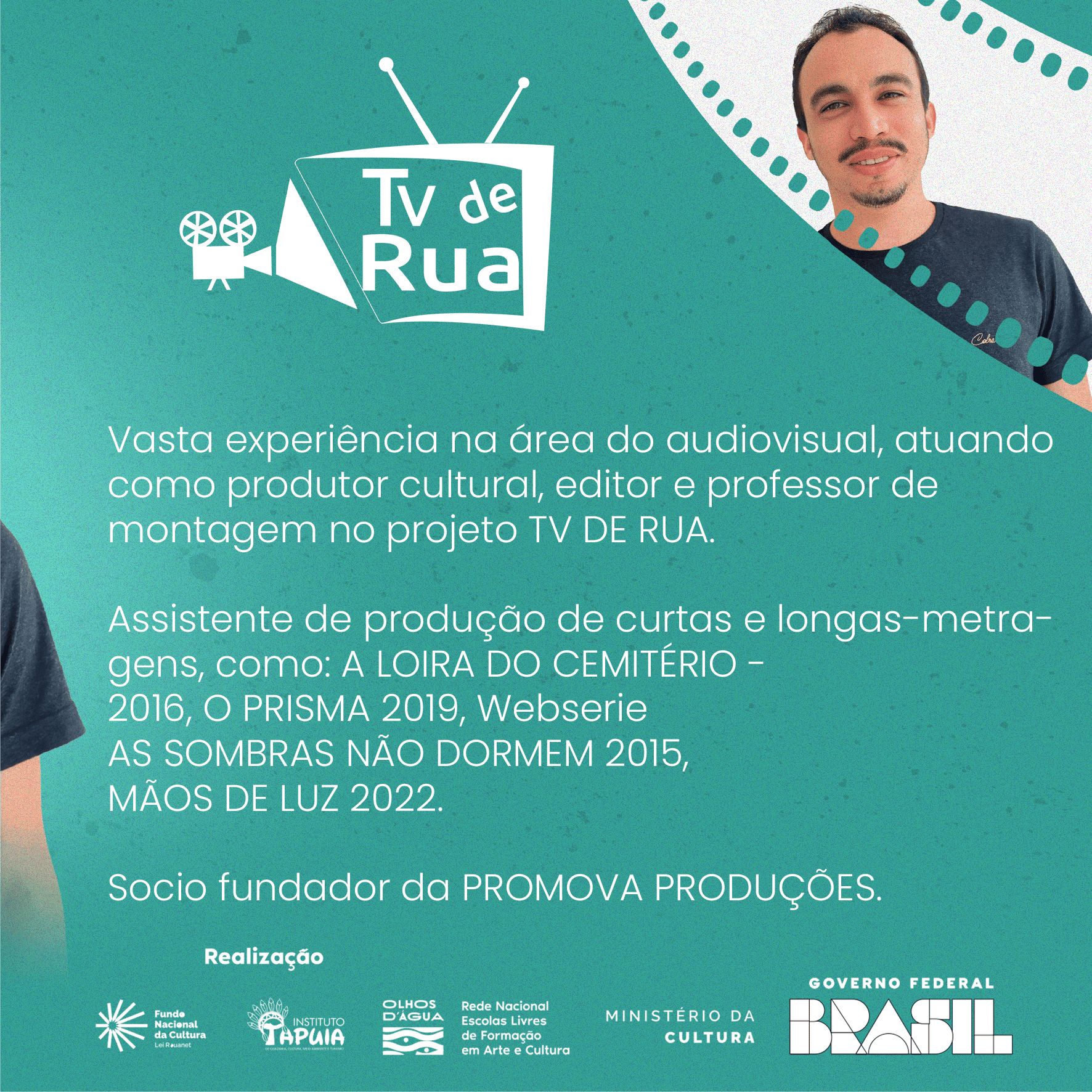 O projeto TV DE RUA, conta com a participação de Rozalvo Barboza Tomaz para ministrar o curso Dirigindo a Montagem: Contar História Através dos Cortes. Proporciona aos jovens as experiências da área do audiovisual, mostra como é possível transmitir ao público emoções através dos cortes e de sua montagem.