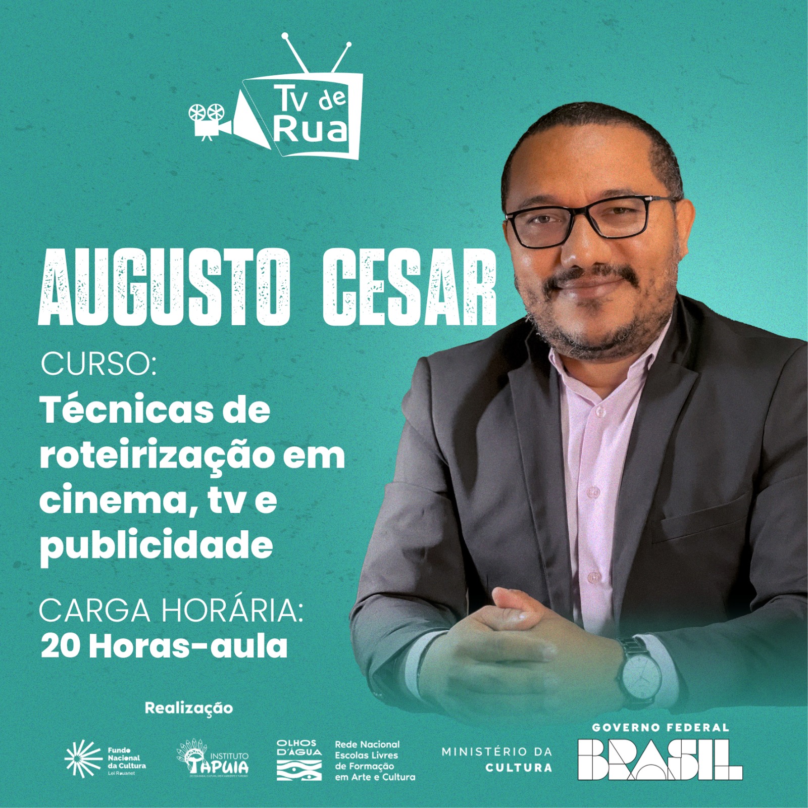 O projeto TV DE RUA conta com a participação do renomado roteirista e diretor Augusto Cesar dos Santos, para ministrar o curso de Técnicas de roteirização para cinema, tv e publicidade.